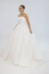 Its sweeping silhouette and elegant chapel train create a regal presence, while the intricate detailing ensures timeless sophistication from every angle. Both modern and fairytale-like, this gown embodies luxury, grace, and a poetic sense of celebration—perfect for the bride who wishes to bloom on her wedding day.