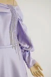 Turn heads with this exquisite lavender gown, meticulously crafted for elegance and sophistication. Its off-the-shoulder puff sleeves and intricate beadwork lend a touch of regality, while the floor-length satin-like skirt flows gracefully, ensuring you make a stunning entrance at any evening affair. Perfect for weddings, galas, or formal celebrations, this dress is where luxury meets timeless charm.