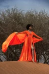 Complement this gown with strappy heels and statement earrings to complete the look. The Desert Blaze Gown is more than a dress – it’s a celebration of fearless style and timeless beauty. Embrace the spotlight and let your elegance blaze!