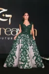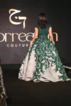 Step into regal splendor with the Emerald Symphony Evening Gown, a masterpiece of couture design that radiates sophistication and grace. Crafted from layers of sheer tulle and meticulously embroidered with shimmering emerald green embellishments, this gown captivates with its exquisite detailing and dramatic silhouette. The fitted bodice, adorned with intricate beadwork, flows seamlessly into a voluminous skirt that glistens with every step, evoking the majesty of enchanted forests and royal elegance. Requiring over 500 hours of hand embroidery, this creation is a true testament to artistry and dedication. Perfect for gala evenings, red-carpet affairs, or once-in-a-lifetime celebrations, this gown is not just worn—it is experienced.