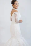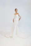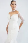 Step into a vision of refined grandeur with the Eternal Frost Elegance gown, meticulously crafted from cascading layers of soft tulle and adorned with exquisite ice crystal embroidery. The fitted silhouette embraces the figure with effortless grace before flowing into a majestic train, while delicate illusion sleeves add a touch of ethereal charm. Each shimmering detail reflects light like frost at dawn, creating a breathtaking presence perfect for the bride who seeks sophistication with a whisper of enchantment. Over 340 hours of hand embroidery bring this masterpiece to life, ensuring every motif sparkles with unrivaled artistry.