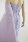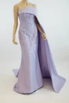 Introducing our exquisite lavender evening gown, a perfect blend of elegance and sophistication. This stunning dress features a strapless neckline that gracefully accentuates the shoulders and collarbone. Intricate beadwork and delicate embroidery adorn the bodice, creating a shimmering effect with the light. The fitted silhouette hugs the body, while the flowing fabric drapes effortlessly, adding a touch of glamour. Ideal for formal events, galas, or any special occasion, this dress promises to make a lasting impression. The luxurious lavender hue complements a variety of skin tones, ensuring you stand out in any crowd. Elevate your evening wear with this timeless piece that exudes confidence and style where making an unforgettable impression is key.